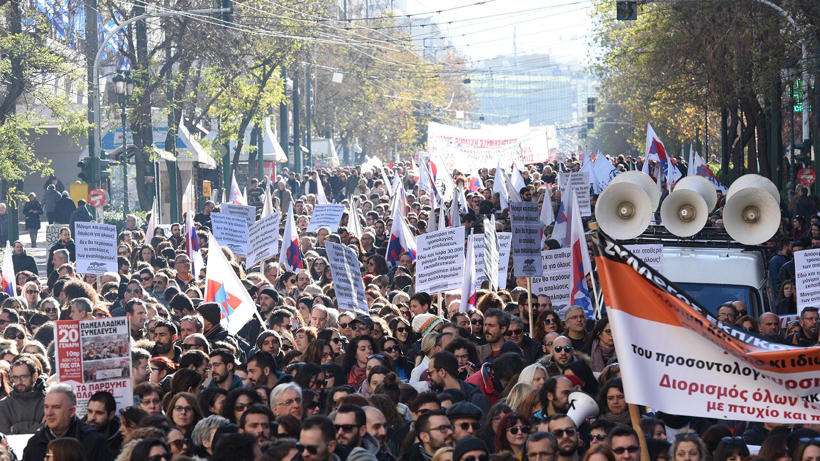 Μαζικές απεργιακές κινητοποιήσεις σε όλη τη χώρα ενάντια στις απολύσεις αναπληρωτών
