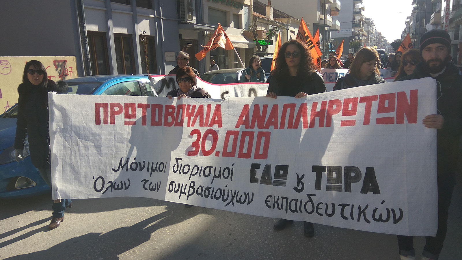 Στη συνέχεια πραγματοποιήθηκε πορεία όπου ακούστηκαν συνθήματα όπως «σήμερα το μάθημα αρχίζει από «Α». Αντίσταση, αγώνας, αξιοπρέπεια», με αίτημα τη μονιμοποίηση όλων των αναπληρωτών.